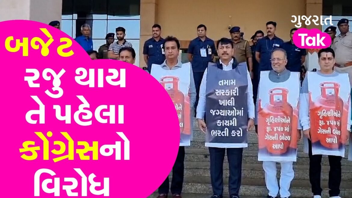ગુજરાતના ઈતિહાસમાં અત્યારસુધીનું સૌથી મોટું બજેટ રજૂ થઈ રહ્યું છે અને તેના પહેલા કોંગ્રેસ દ્વારા વિરોધ પ્રદર્શન કરવામા આવ્યું હતું- જૂઓ આ વીડિયો-